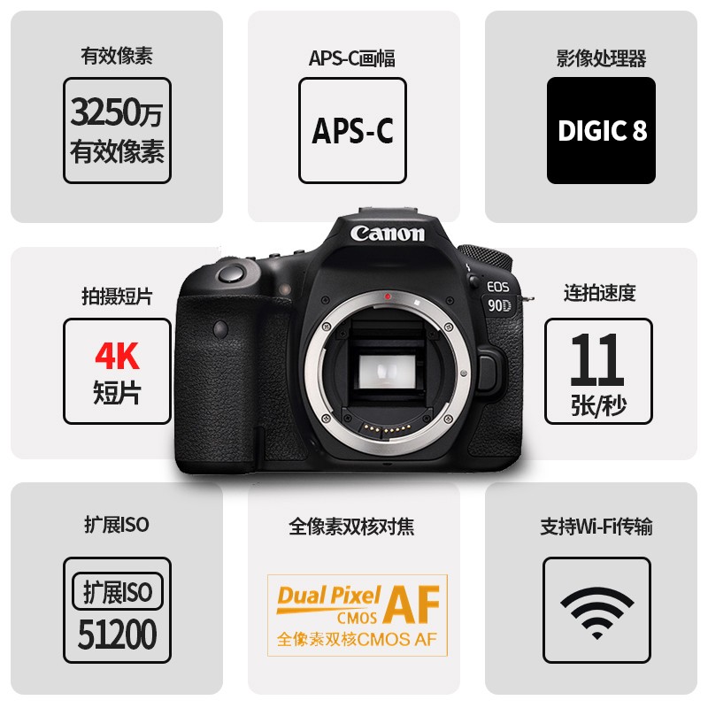 佳能(Canon)90d 数码单反照相机视频高清相机 EOS 90D 单机身旅行版价格:8688.00元!