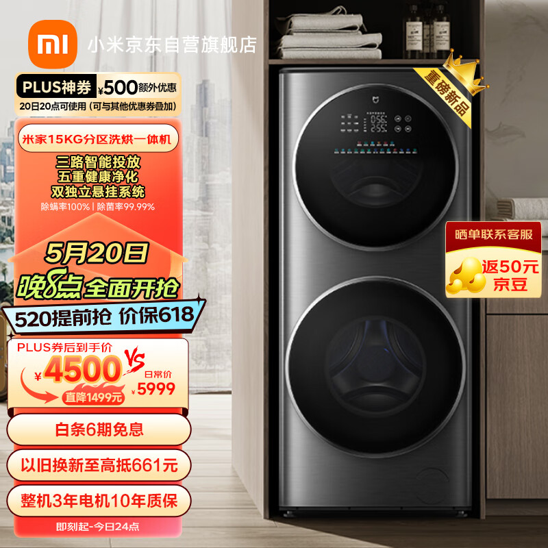 米家小米15KG子母双筒分区洗衣机洗烘一体滚筒全自动 直驱变频高温洗空气洗XHQG150MJ206价格:5000.00元!