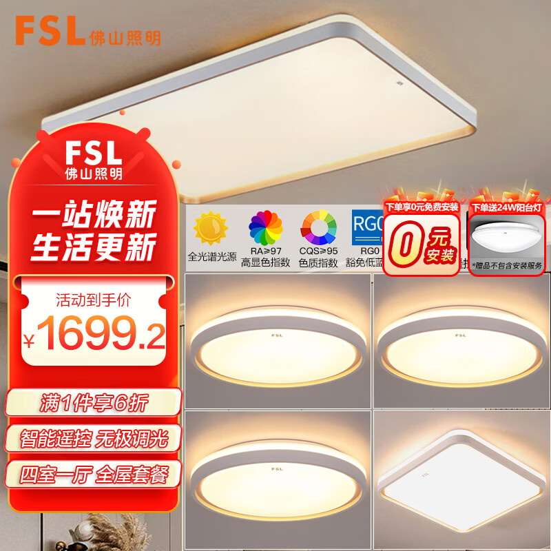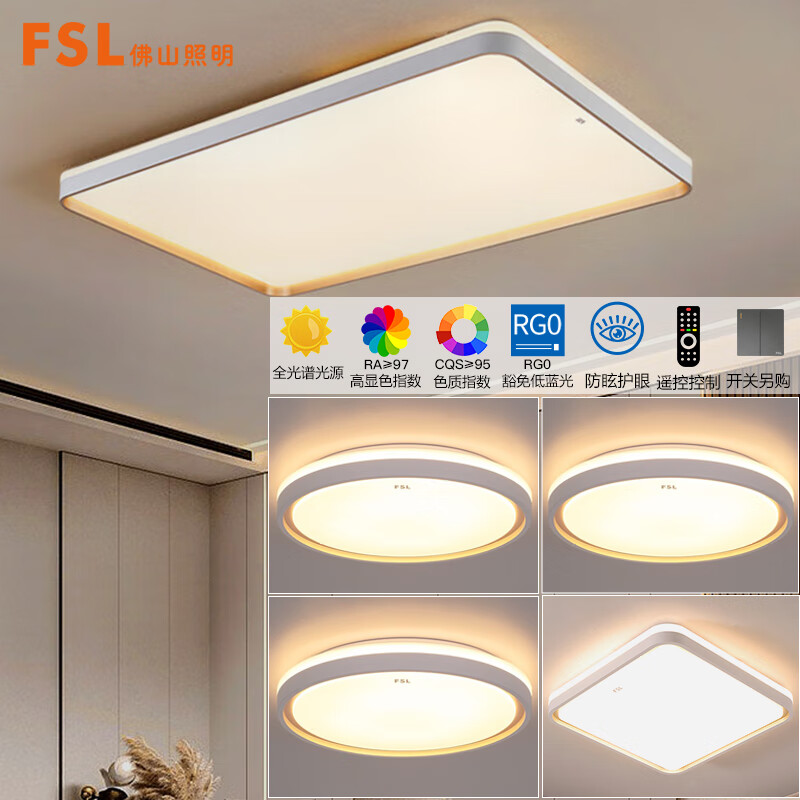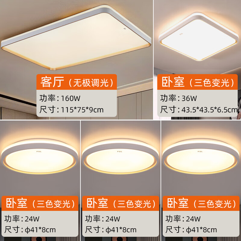 FSL佛山照明LED吸顶灯调色灯具套餐客厅灯大尺寸97显低蓝光四室一厅价格:2999.00元!