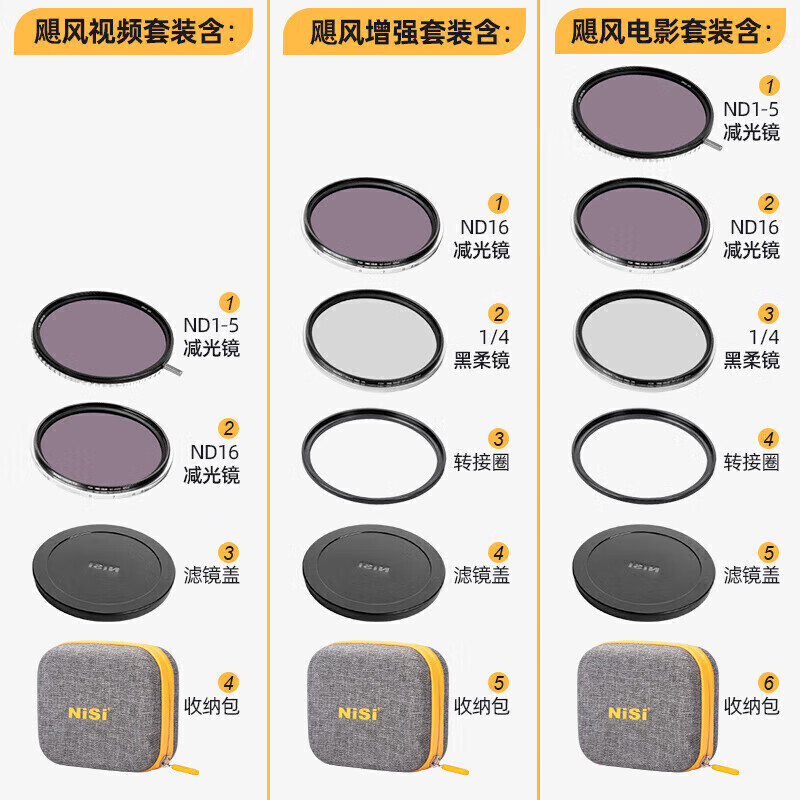 耐司(NiSi)飓风快装系统 电影套装 95mm nd滤镜 可调减光镜nd1-5 nd16 黑柔滤镜1/4 人像拍摄可搭uv镜价格:1718.00元!