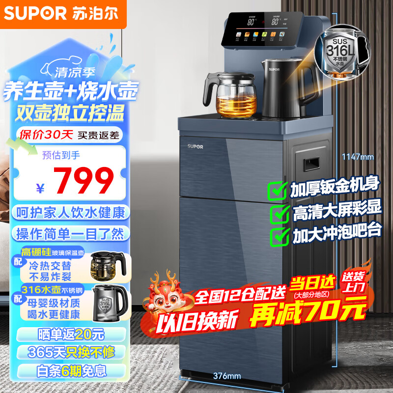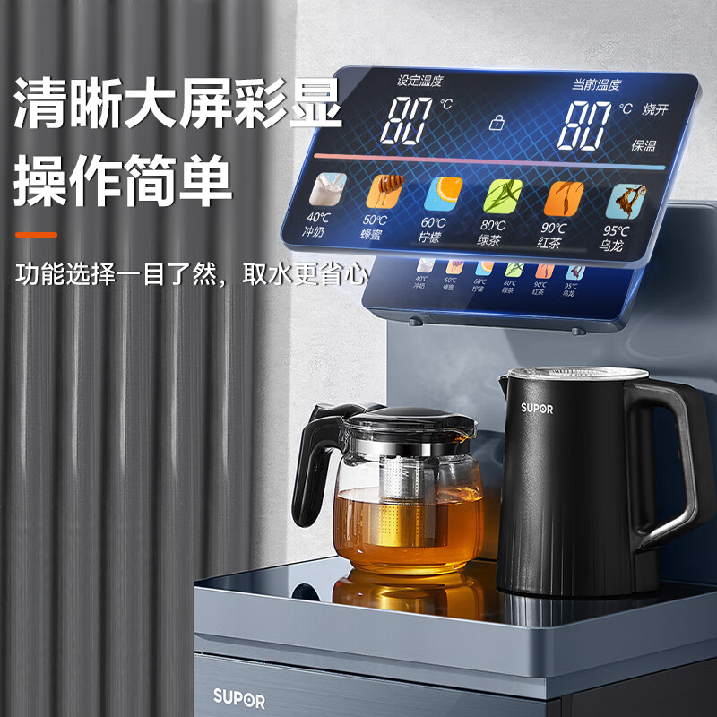 苏泊尔(SUPOR)茶吧机家用高端饮水机遥控智能下置水桶全自动控温立式冷热316L水壶泡茶机CBJ22A价格:799.00元!