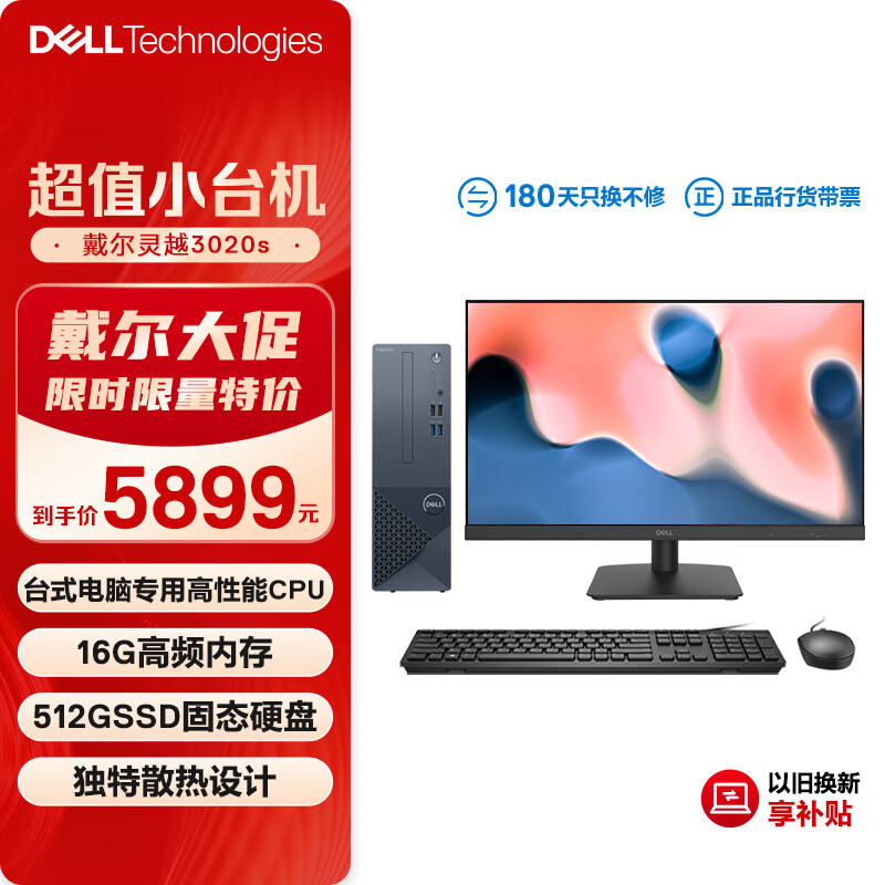 戴尔(DELL)灵越3020S 台式电脑主机 (酷睿13代i7-13700 16G 512GSSD)23.8英寸大屏显示器 高性能CPU价格:5699.00元!