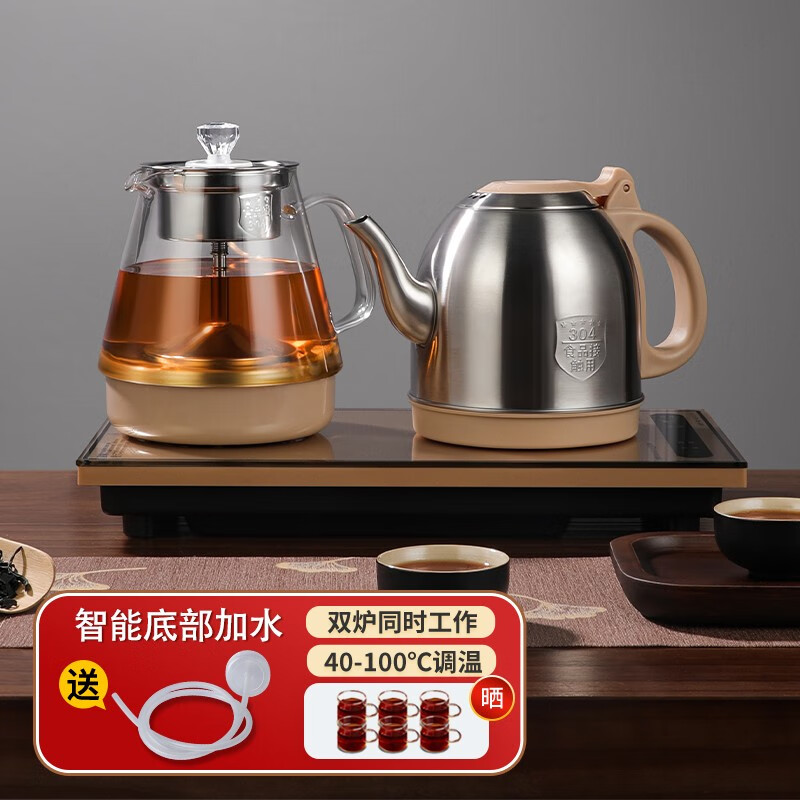 FUNORK全自动上水电热烧水壶煮泡茶专用茶台一体机茶几茶桌嵌入式抽水茶具套装电茶炉烧水器 金色蒸茶款(37x20cm)价格:239.00元!