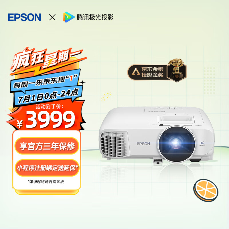 爱普生(EPSON)CH-TW5700TX家用投影仪 3LCD智能家庭影院投影机(1080P 2700流明 智能系统)价格:4099.00元!