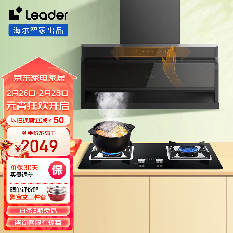 海尔(Haier)抽油烟机燃气灶套装 顶侧双吸油烟机家用 24风量大吸力 5.2kw灶具 海尔出品IQ92D+QIGL2C天然气价格:2049.00元!