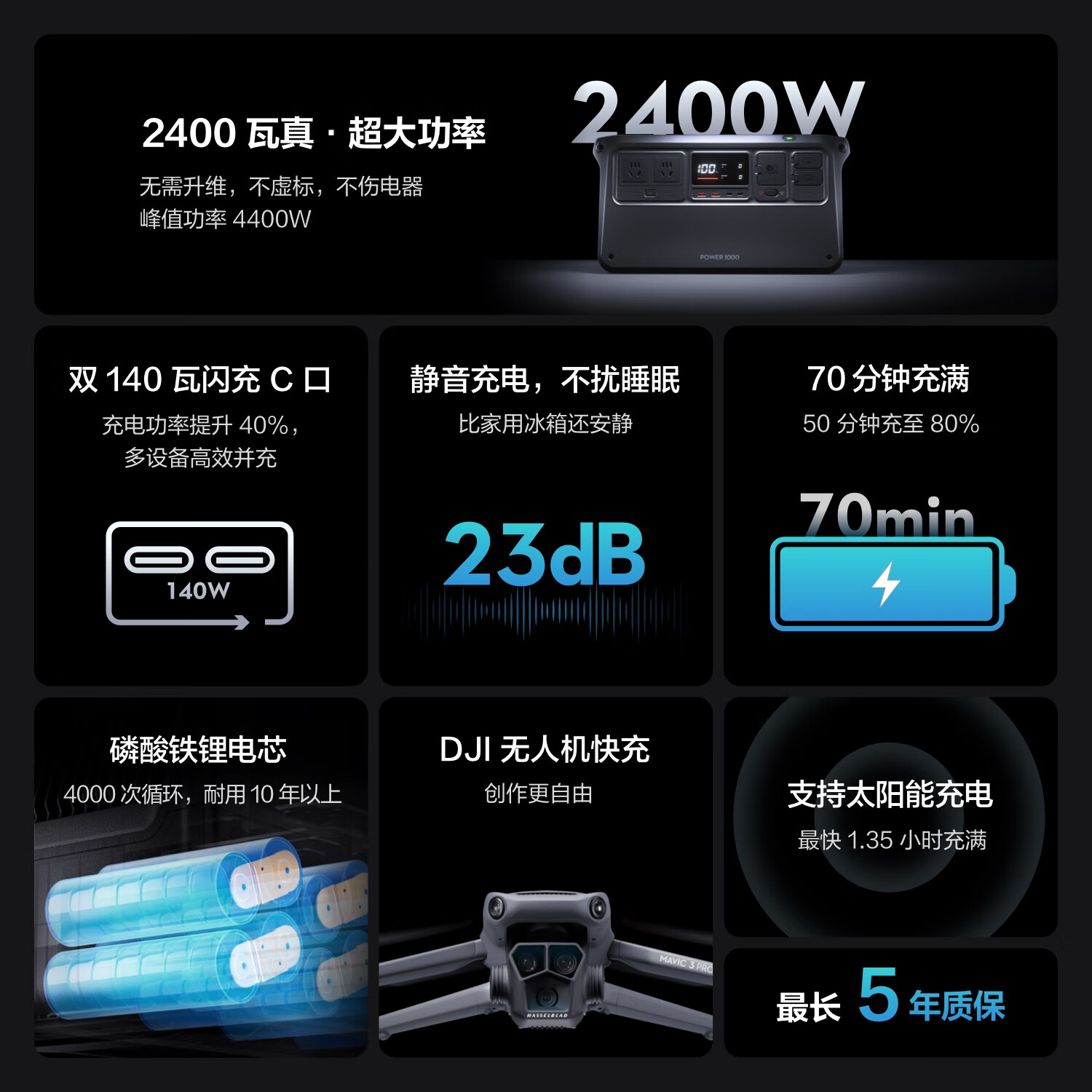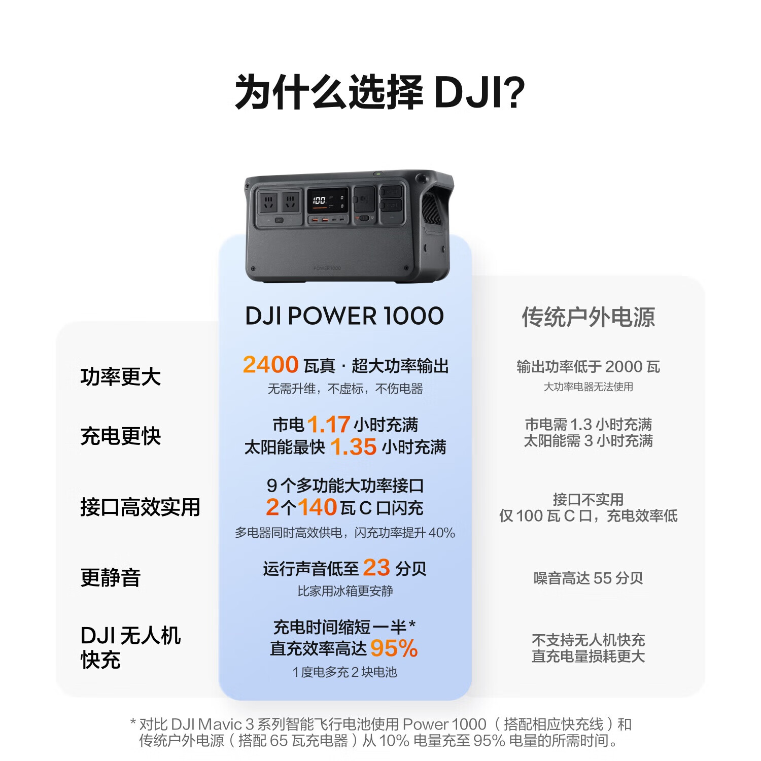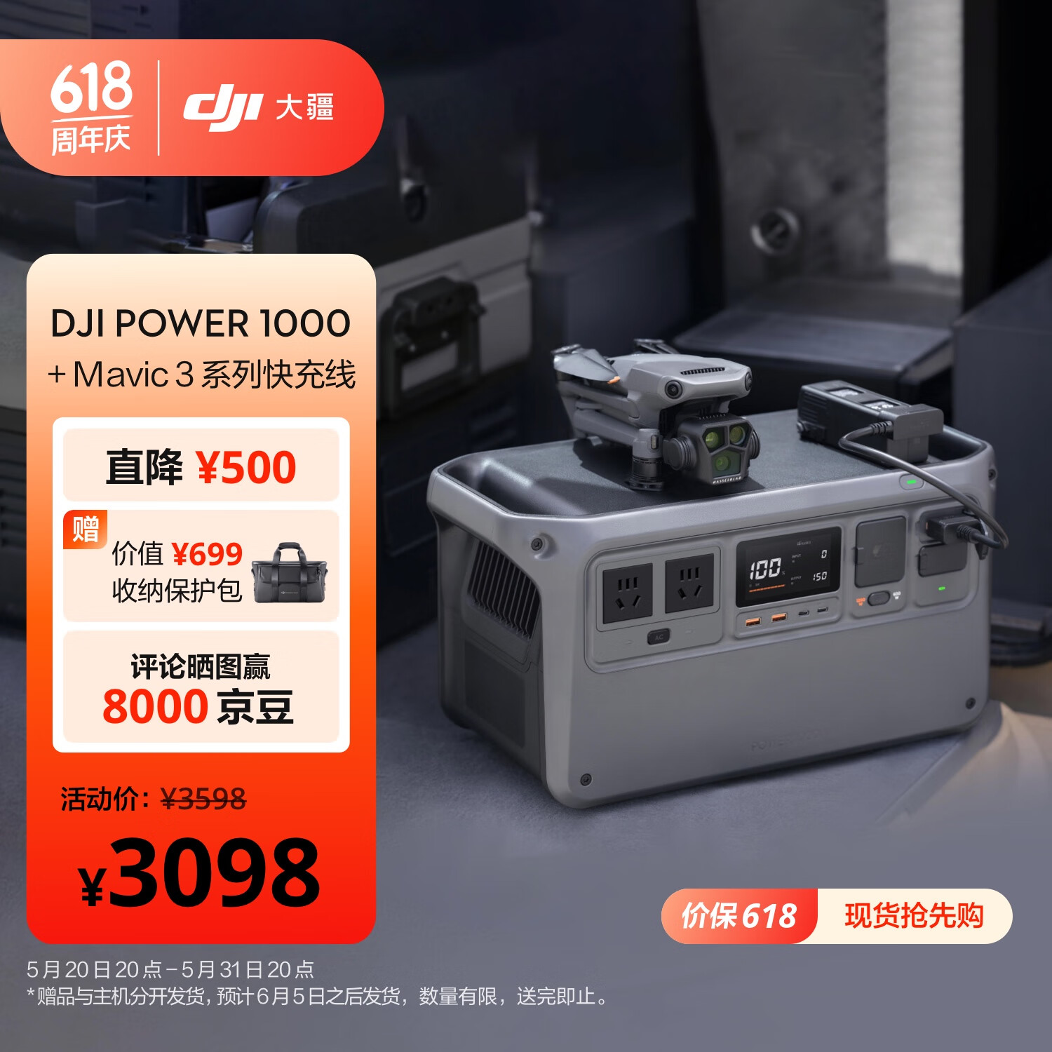 大疆【2400W真大功率】户外移动电源 1度电 220V大容量 露营自驾 DJI Power 1000+Mavic 3 系列快充线价格:3098.00元!