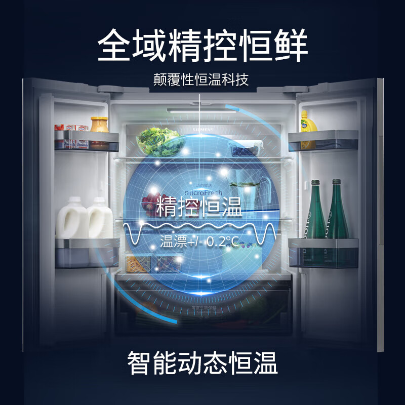 西门子(SIEMENS)冰箱四开门462升家用变频大容量微缝嵌入精控恒鲜零度保鲜多区净味铂金抗菌智能电冰箱KF72FVAU0C价格:11990.00元!