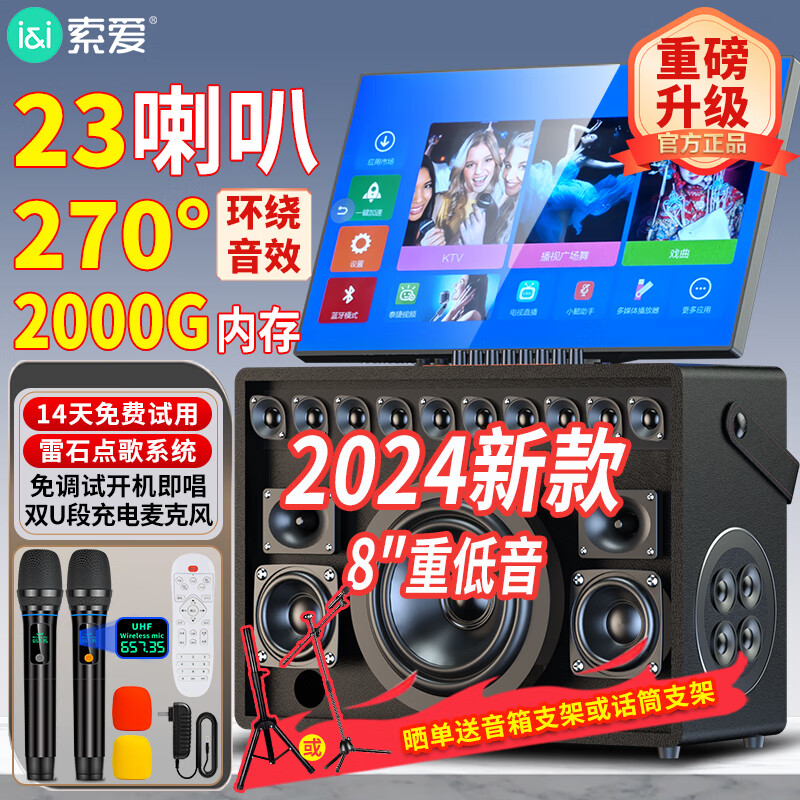 索爱(soaiy)K825家庭ktv音箱套装户外广场舞音响带显示屏家用移动k歌音箱点歌机触摸屏一体机卡拉ok机2000G价格:4480.00元!