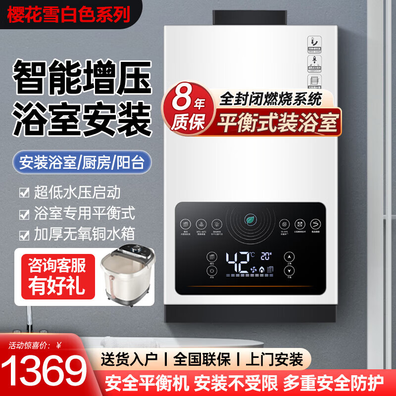 樱花雪白色增压平衡式家用13升燃气热水器 可装浴室升级增大水量ECO节能主动防CO泄露 天然气JSG25-B价格:1188.00元!