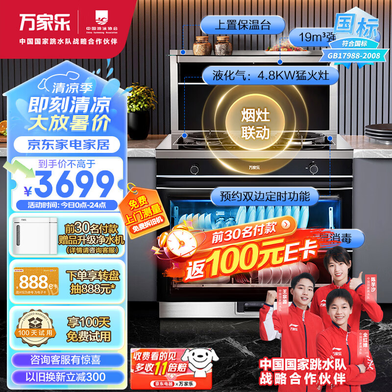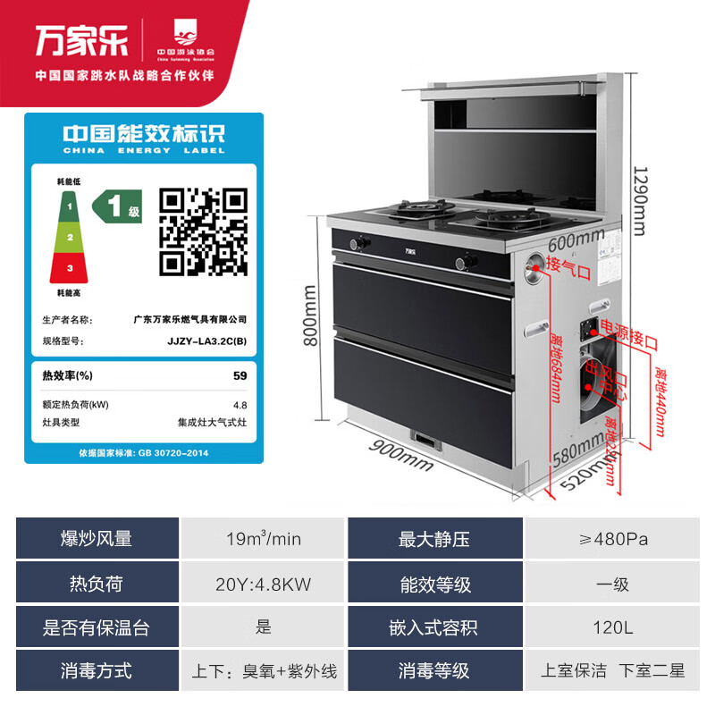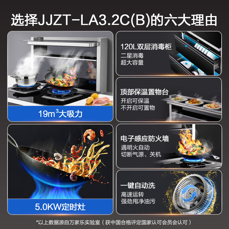 万家乐 集成灶消毒柜二19m3/min抽油烟机自清洁烟灶联动套装120L消毒柜一体灶 JJZY-LA3.2C(B)液化气价格:3999.00元!