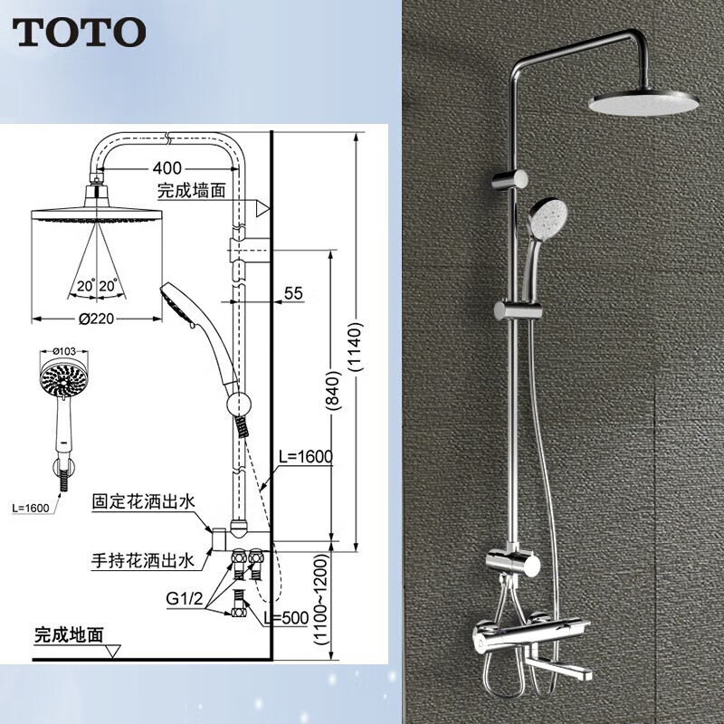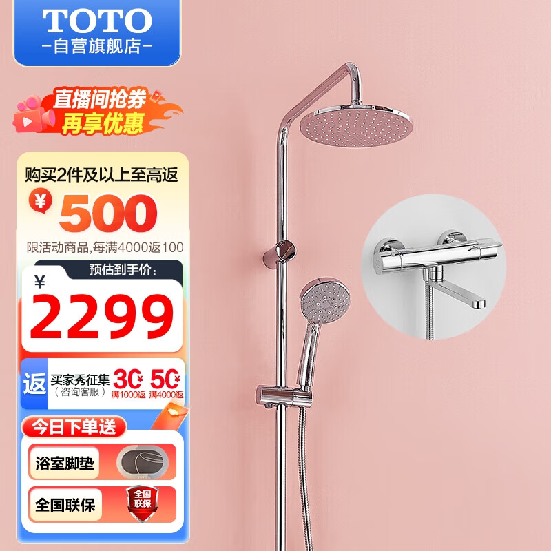 TOTO卫浴铜质浴室淋浴花洒套装自动恒温智能控制TBW01S04+03427(05-L)价格:2439.00元!