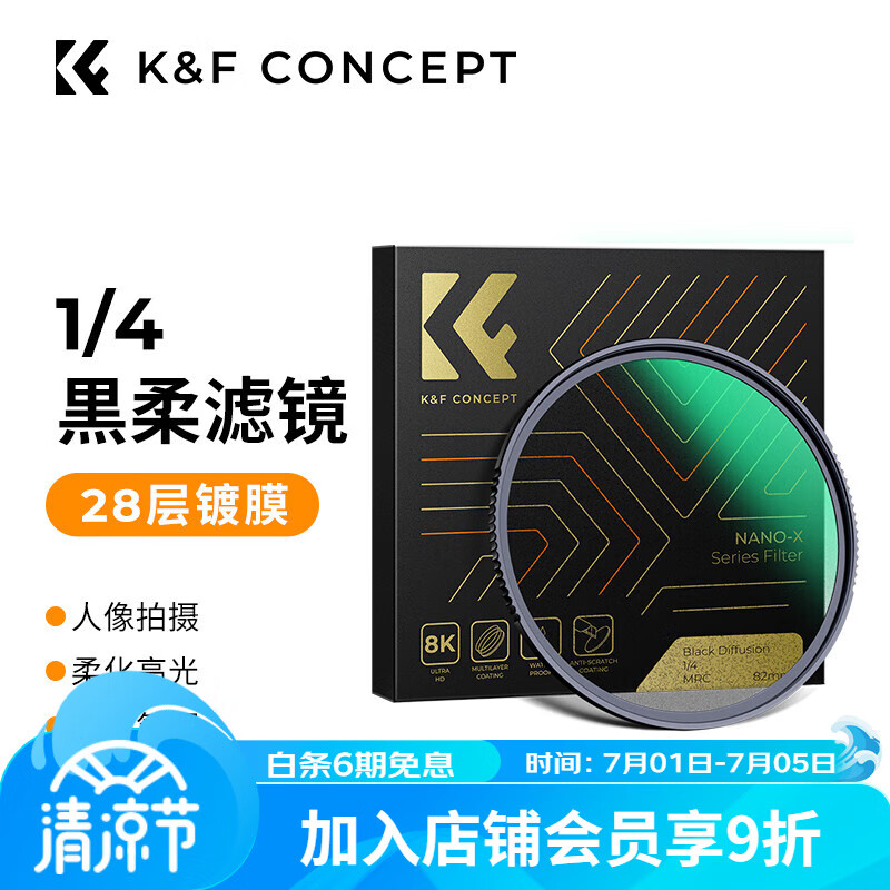 K&F Concept卓尔 黑柔滤镜 1/4柔焦镜 28层镀膜防刮适用于佳能索尼单反相机防水防刮超清人像柔光镜82mm价格:420.00元!