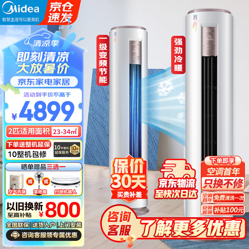 美的(Midea)空调柜机 2匹 智行 新一级能效 变频冷暖 除湿 客厅空调立式 KFR-51LW/BDN8Y-YH200(1)A价格:4899.00元!