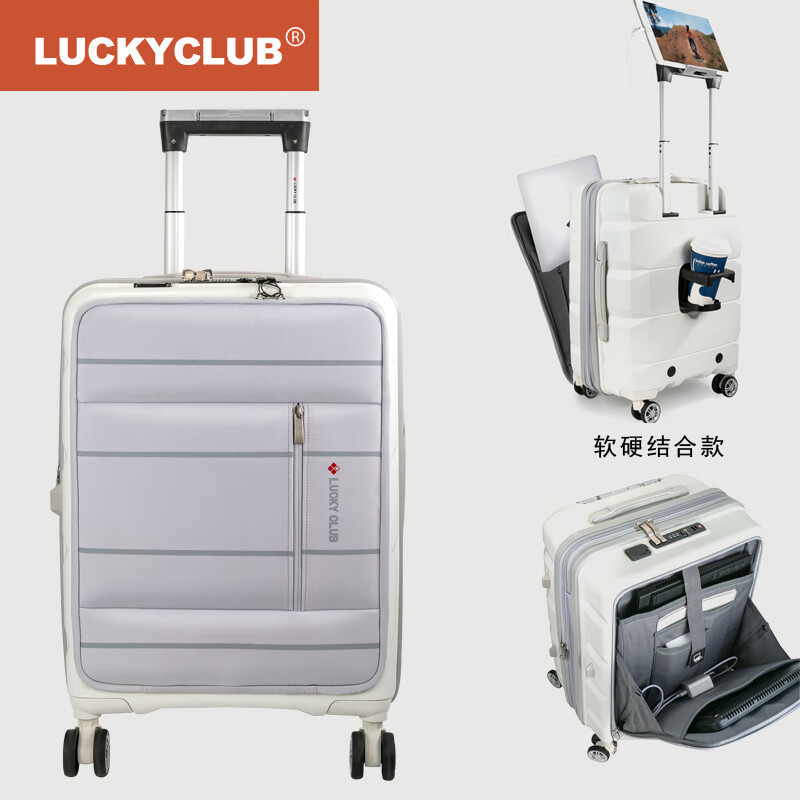 LUCKY CLUB多功能登机箱20英寸行李箱小万向轮男女密码皮拉杆旅行箱子软硬款价格:746.00元!