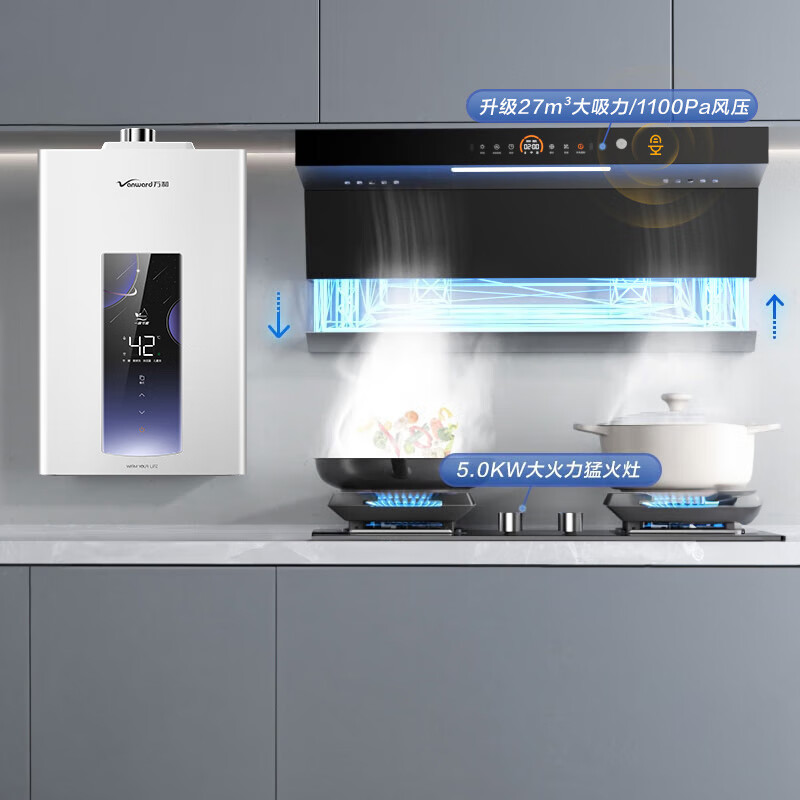 万和(Vanward)烟灶热三件套 27m3风量顶侧双吸升降油烟机燃气灶具一级节能热水器WL970(Pro)+C5L90S+ME5J16价格:4098.00元!