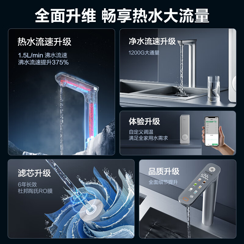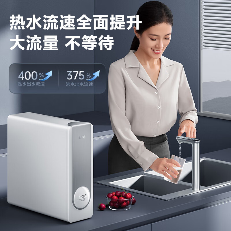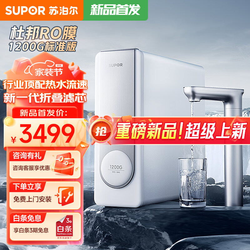 苏泊尔(SUPOR)净水器家用净热一体机RO反渗透纯水机过滤器UH03滤水器台上软水机厨下厨房1200G净水机价格:3399.00元!