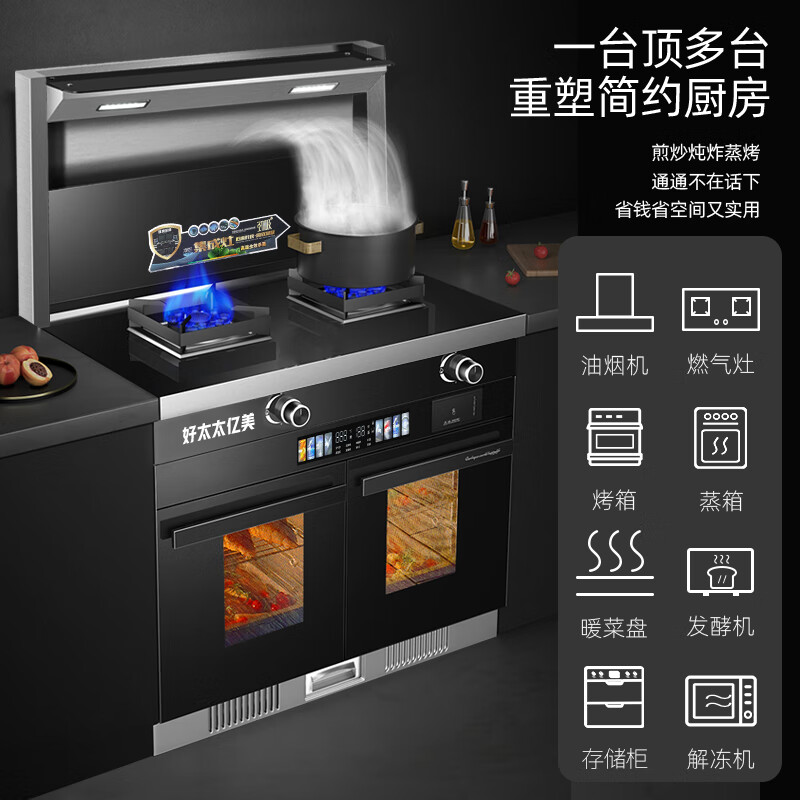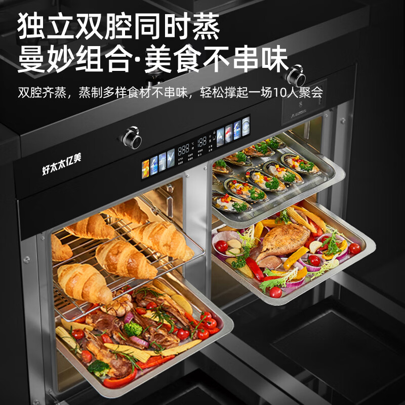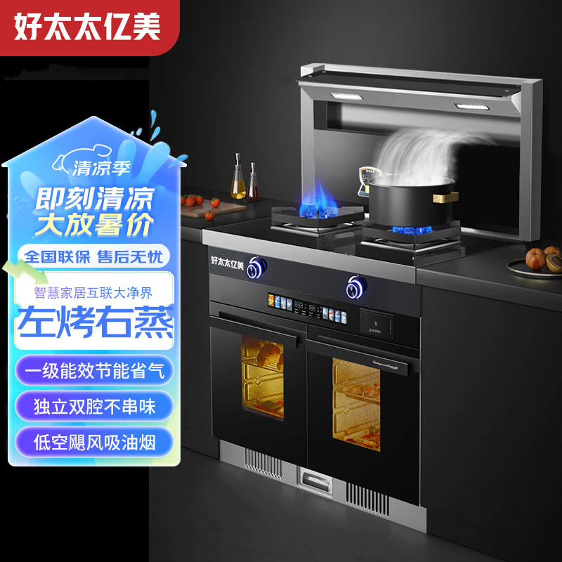 好太太亿美集成灶蒸烤一体式保洁柜蒸烤箱集成灶双门左蒸右烤22立方大吸力油烟机燃气灶5.2KW天然气JJZT-F01价格:4598.00元!