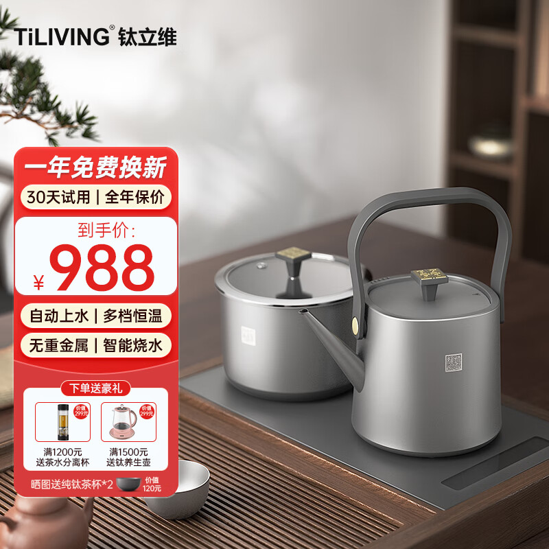 TILIVING(钛立维)纯钛自动上水壶茶台烧水壶电热水壶电茶炉底部上水保温一体恒温开水壶泡茶煮水煮茶壶价格:988.00元!