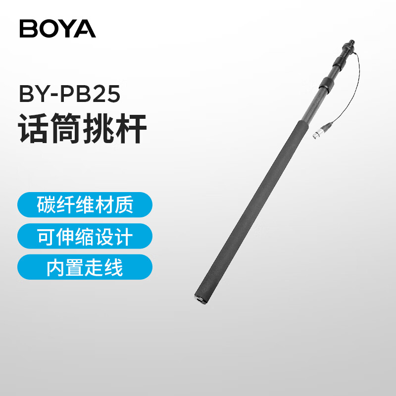 BOYA博雅 挑杆 户外麦克风录音专业设备 街头采访直播微电影收音话筒挑杆碳纤维录音吊杆 BY-PB25价格:800.00元!