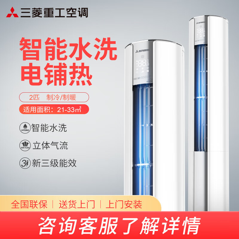 三菱重工适用21-33㎡新三级能效2匹智能电辅热 远程送风 立体气流 立式空调柜机SRFNG50三菱空调以旧换新价格:8999.00元!