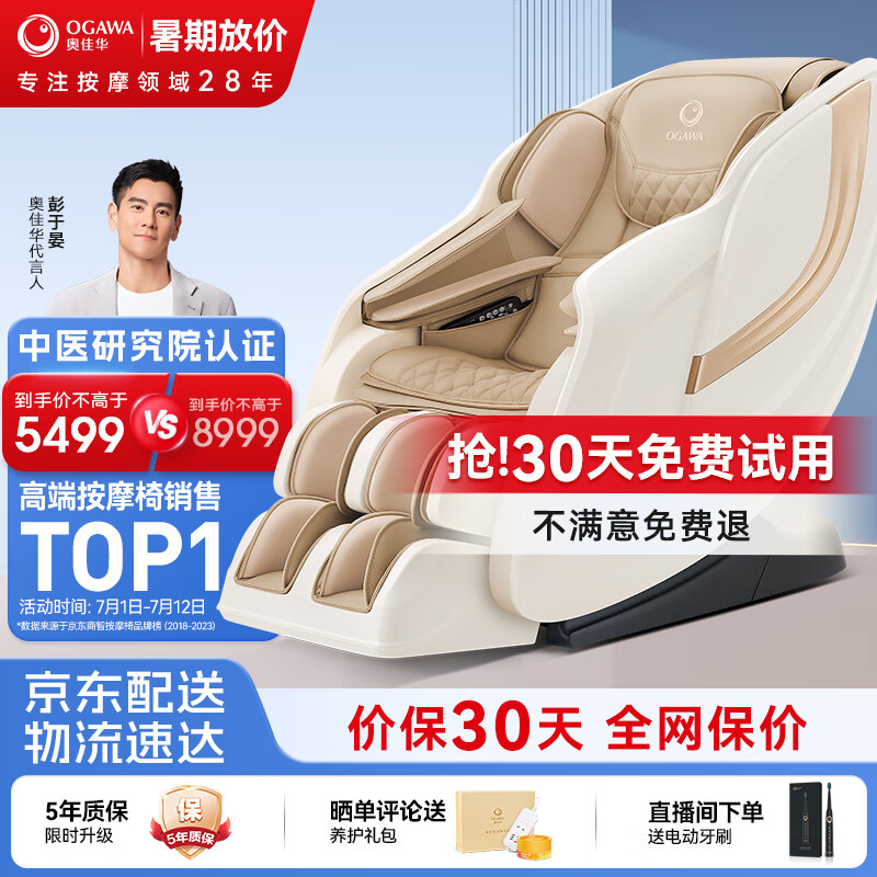 奥佳华(OGAWA)按摩椅十家用全身太空舱3D机芯按摩小型小巧沙发全自动零重力中医养生颈椎肩颈OG-7508Neo 【90%客户选择】落日暖杏价格:8999.00元!