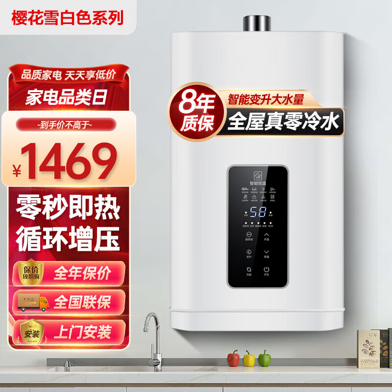 樱花雪白色家用燃气热水器零冷水双增压大水量伺服即开即热16升洗澡智能恒温ECO节能 天然气JSQ30-16H5价格:1258.00元!