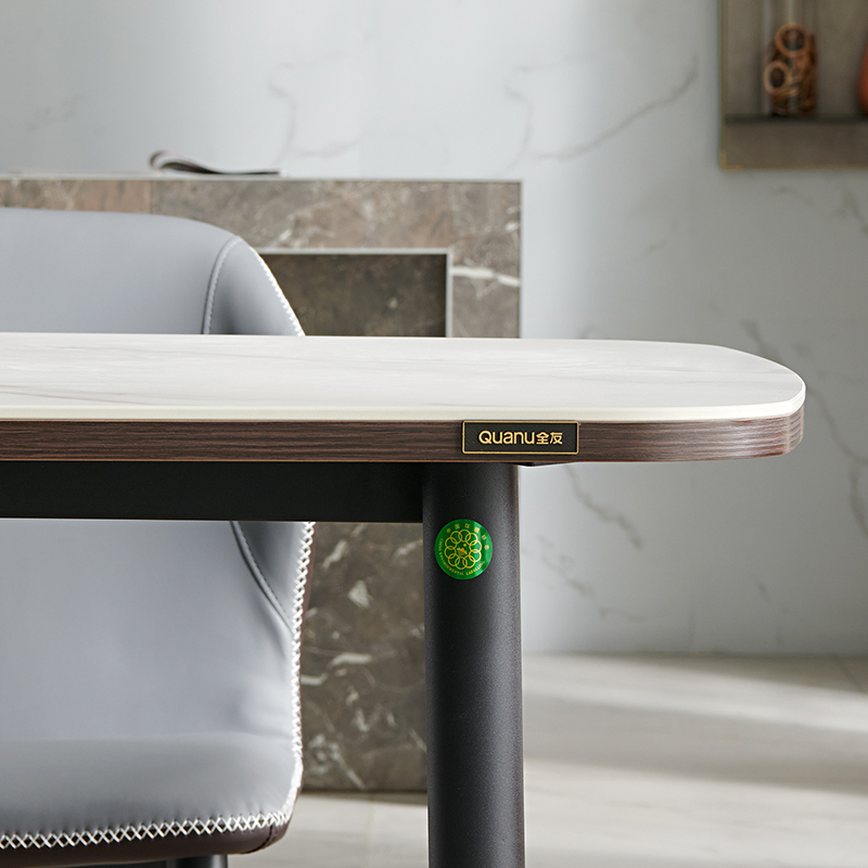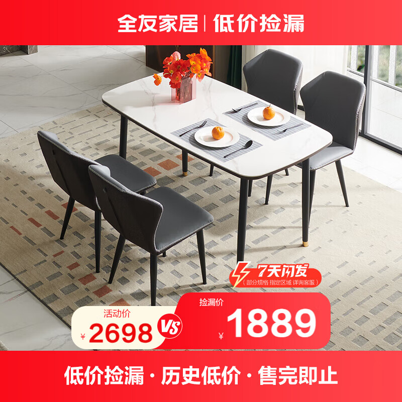 全友家居 可唯金岩板餐桌椅组合 意式轻奢金属框架国民家居桌子家具价格:2698.57元!