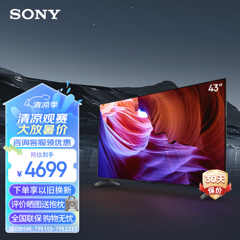 索尼(SONY)KD-43X85K 43英寸 4K HDR 屏安卓智能液晶平板电视机 X1芯片 广色域 120Hz价格:4499.00元!