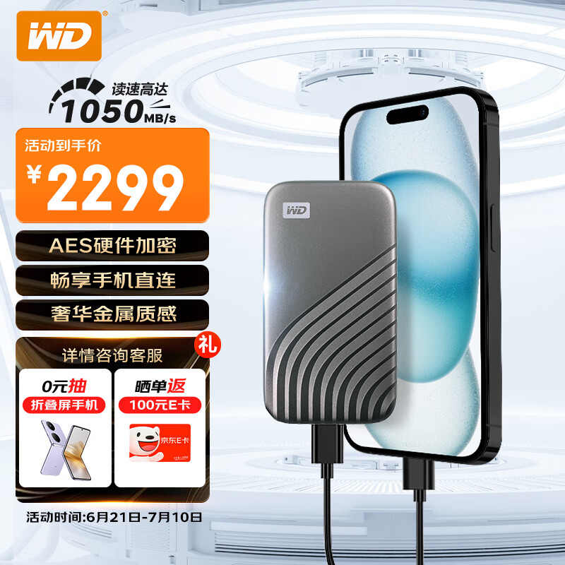 西部数据(WD)4TB NVMe 移动固态硬盘(PSSD)My Passport随行SSD type-c接口 1050MB/s 手机直连笔记本外接价格:2299.00元!
