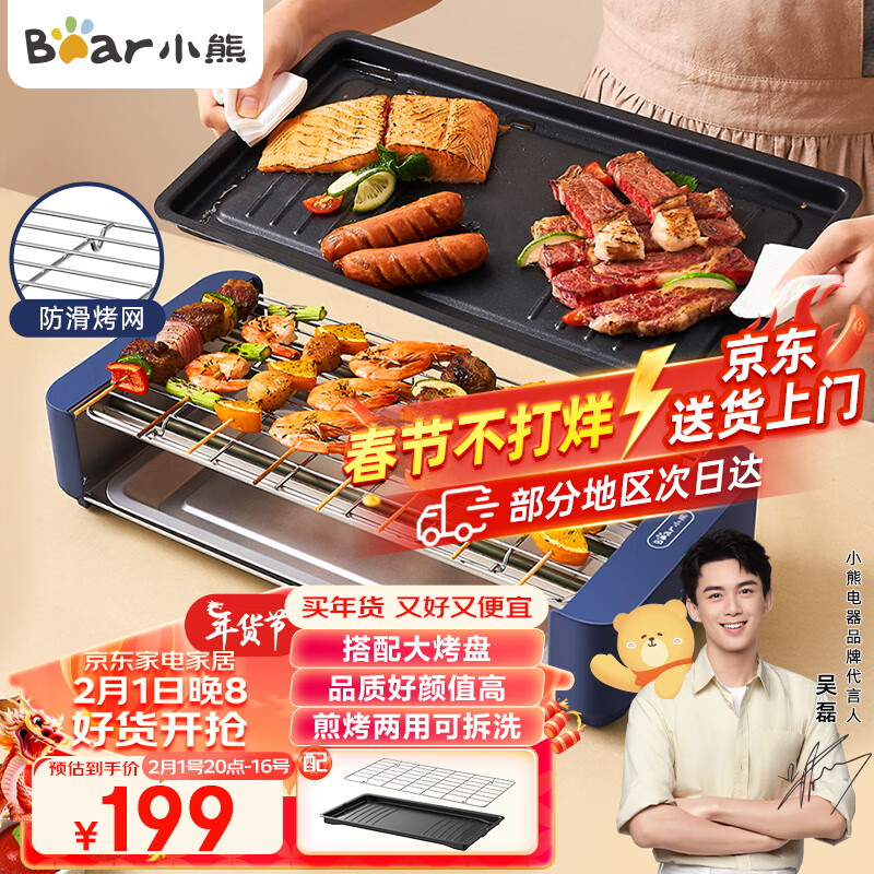 小熊(Bear)【吴磊推荐】电烤炉烧烤炉电烤盘烤盘烤串机烧烤架烤肉盘家用大功率无浓烟不粘烤肉炉DKL-E20G1价格:229.00元!