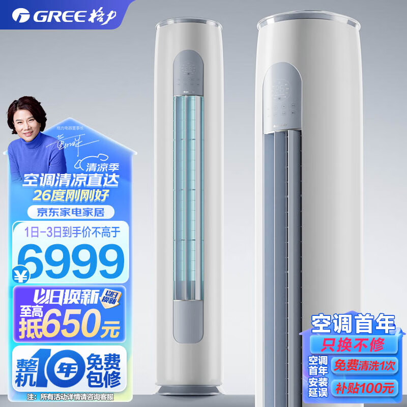 格力(GREE)空调 京东小家智能生态 3匹 云逸-Ⅱ 1级能效 客厅空调立式空调柜机KFR-72LW/NhGm1BAj价格:6999.00元!