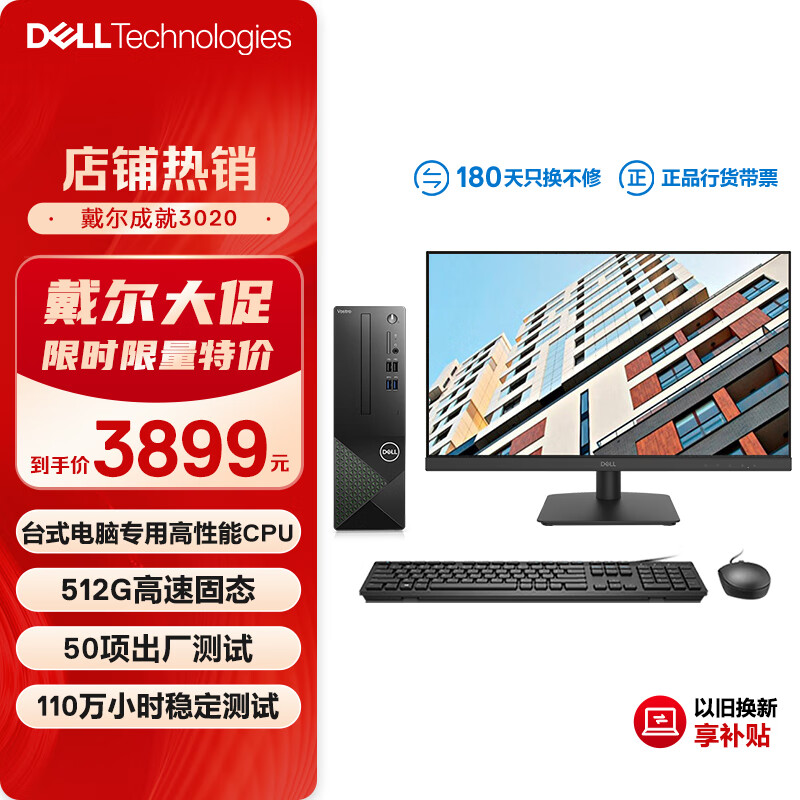 戴尔(Dell)成就3020 台式电脑主机 (酷睿13代i5-13400 8G 512GSSD)23.8英寸大屏显示器 高性能CPU价格:3899.00元!
