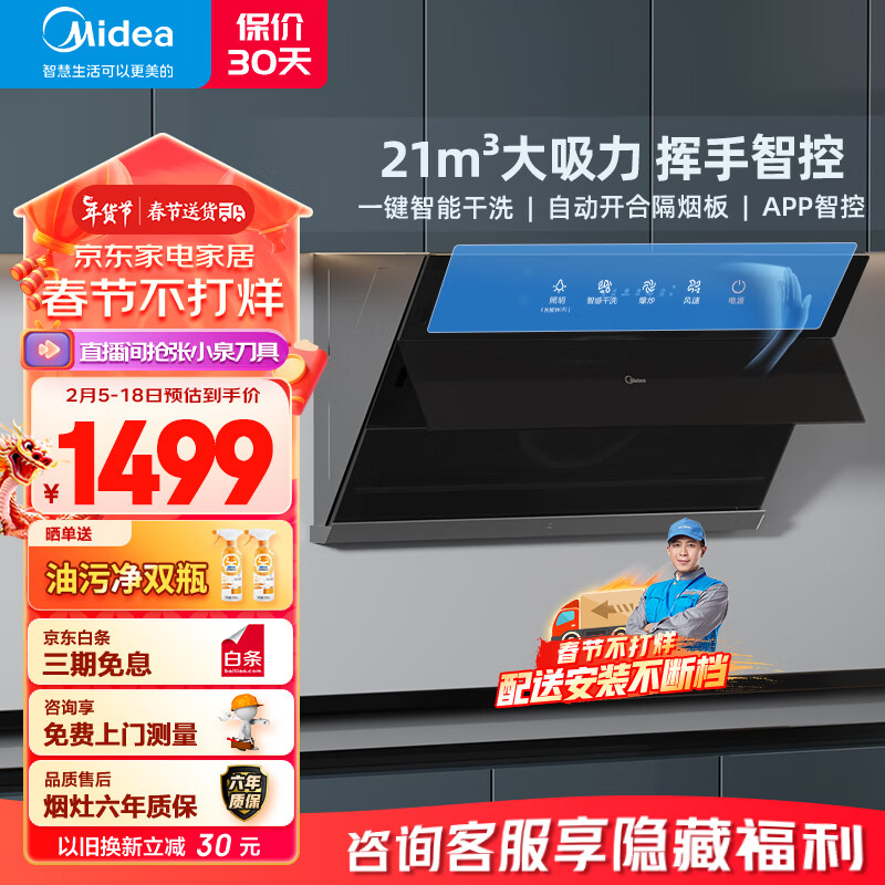 美的(Midea) 抽油烟机侧吸式家用厨房油烟机 21立方大吸力 排油烟机 脱排吸油烟机 自动清洗 J39价格:1499.00元!