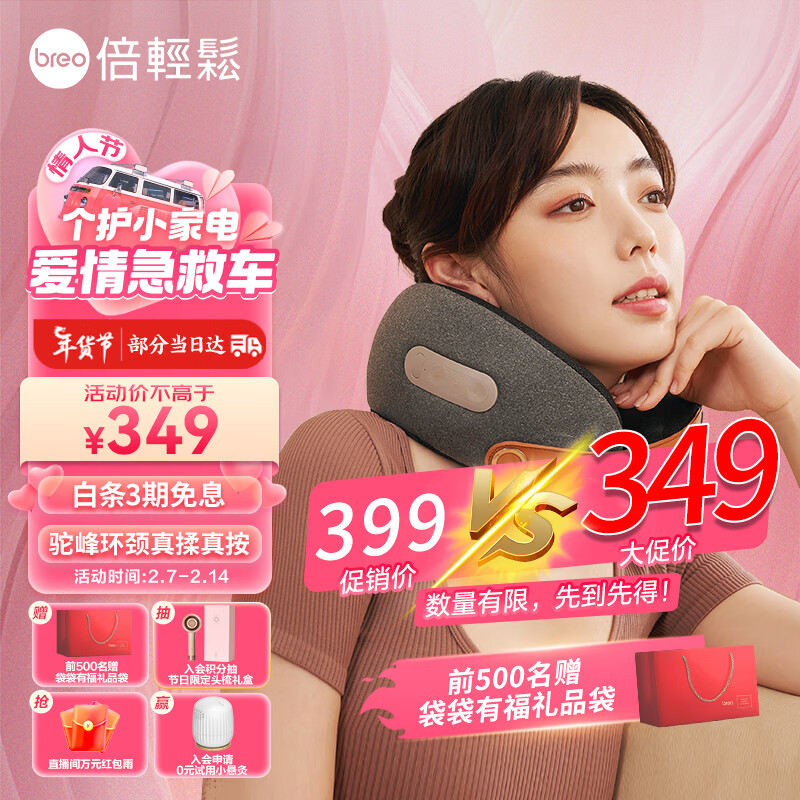 倍轻松(breo)颈椎按摩器Neck C2 颈部肩颈按摩仪家用枕便携环颈U型枕热敷揉捏 情人节新年礼物 易烊千玺代言价格:459.00元!