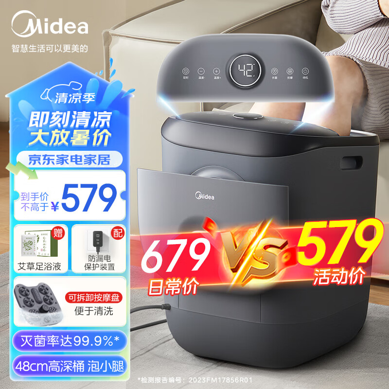 美的(Midea)泡脚桶杀菌恒温加热电动按摩足浴盆高深桶泡小腿可拆洗按摩盘生日礼物送父母长辈礼物ZL2雅致灰价格:579.00元!
