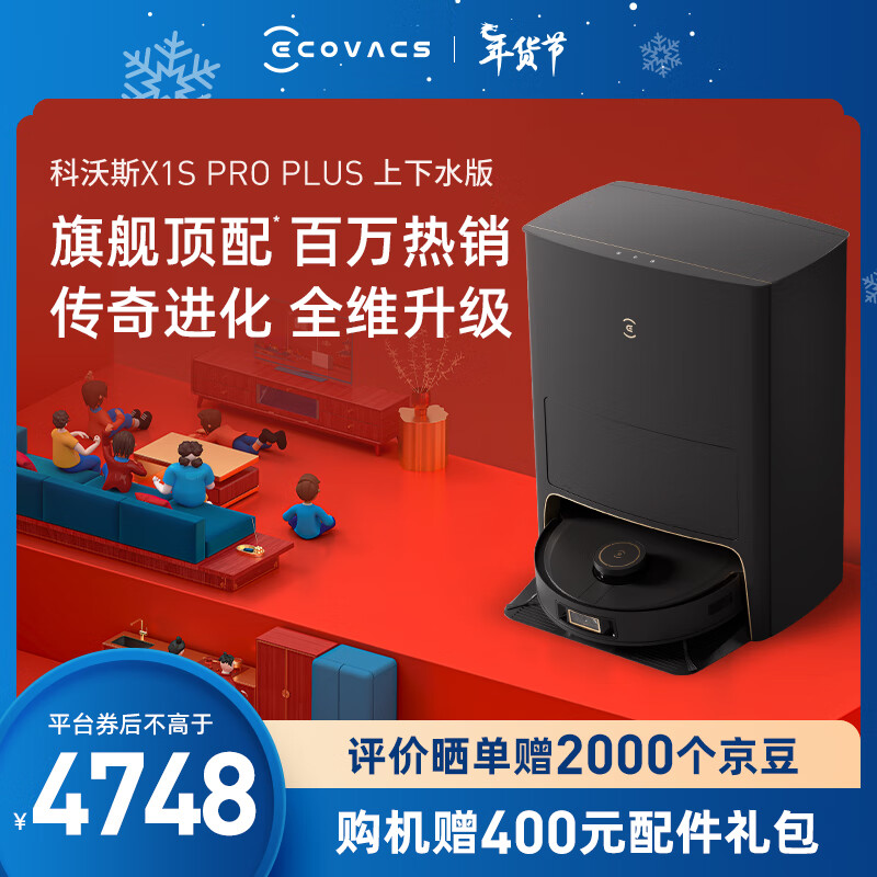 科沃斯(ECOVACS)扫地机器人X1S PRO PLUS上下水版扫拖一体自动集免洗抹布智能家用洗地机集尘全自动清洗全能版价格:4848.00元!