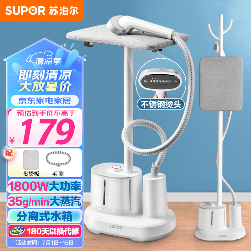 苏泊尔(SUPOR)【蝉联金榜】挂烫机家用1800w大功率手持蒸汽熨烫机服装店分离式水箱杀菌电熨斗带熨烫板GT17BP价格:179.00元!