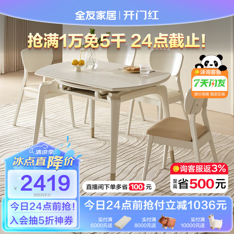 全友家居 餐桌现代简约岩板餐桌可圆可方伸缩功能吃饭桌子家具DW1121B价格:3455.71元!