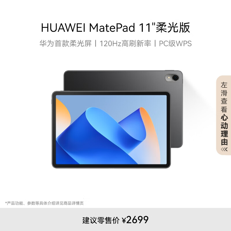 HUAWEI MatePad 11英寸2023款柔光版华为平板电脑120Hz高刷2.5K护眼屏娱乐学习 8+256GB WIFI曜石黑价格:2599.00元!