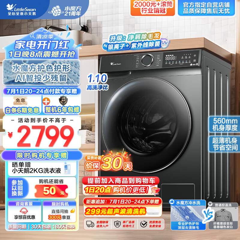 小天鹅(LittleSwan)滚筒洗衣机全自动家用 水魔方【TG100V618PLUS】护形护色 10公斤大容量 智能投放 以旧换新 内衣洗价格:2899.00元!