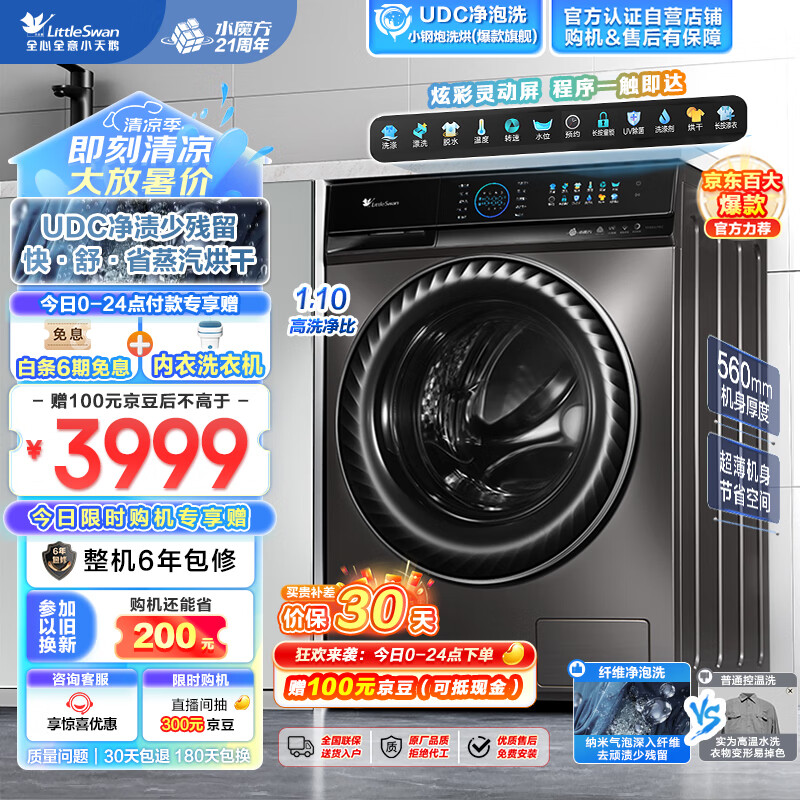 小天鹅(LittleSwan)滚筒洗衣机全自动家用 水魔方【小钢炮 TD100UTEC】带烘干洗烘一体 UDC净渍 超薄 10公斤 809洗烘价格:4099.00元!