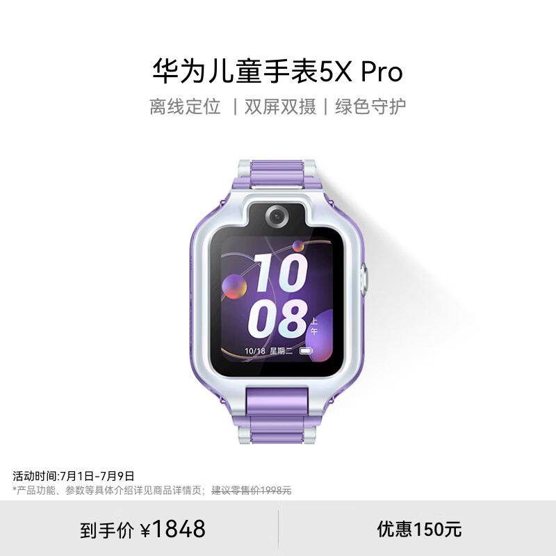 华为儿童手表 5X Pro华为手表智能手表离线定位电话极光紫价格:1848.00元!