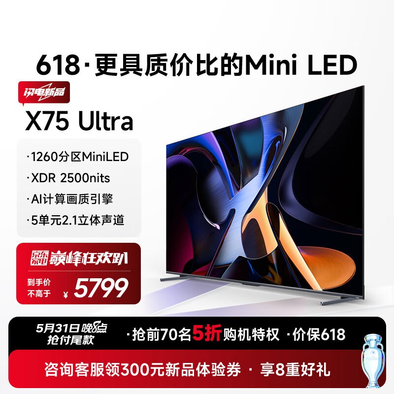 Vidda X75 Ultra 海信电视 75英寸 1260分区Mini LED 2500nits 144Hz 4+64G 液晶以旧换新75V7N-Ultra价格:6499.00元!