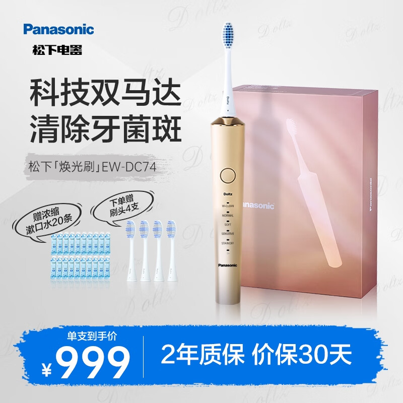 松下(Panasonic)电动牙刷成人科技双马达技术焕光刷情侣礼物带紫外线杀菌牙刷盒三支刷头充电头EW-DC74-N价格:1149.00元!