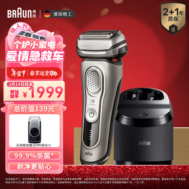博朗(BRAUN)经典9系电动剃须刀整机德国进口往复式剃须刀刮胡刀男士男朋友生日礼物送老公情人节礼物送男友价格:1999.00元!