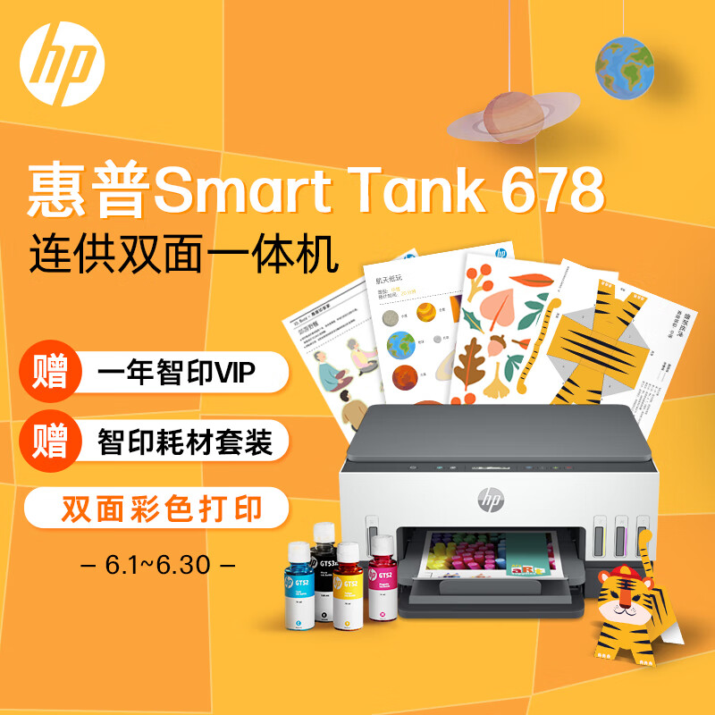 惠普(HP)678 彩色连供自动双面多功能喷墨打印机? 无线连接 微信打印 复印扫描 家用作业 商用办公价格:1449.00元!