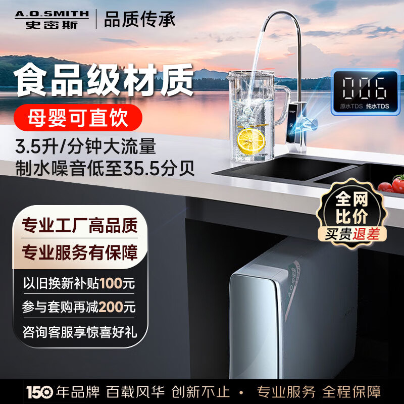 史密斯(A.O.SMITH)佳尼特净水器蓝鲸3500家用厨下式直饮净水机反渗透3.5升/分钟食品级材质0陈水CR3500AB1价格:4299.00元!