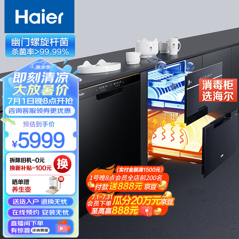 海尔(Haier) 消毒柜 洗碗机 115L大容量 三层嵌入式消毒碗柜E07JU1 15套晶彩系列嵌入式洗碗机一级能效价格:6666.00元!