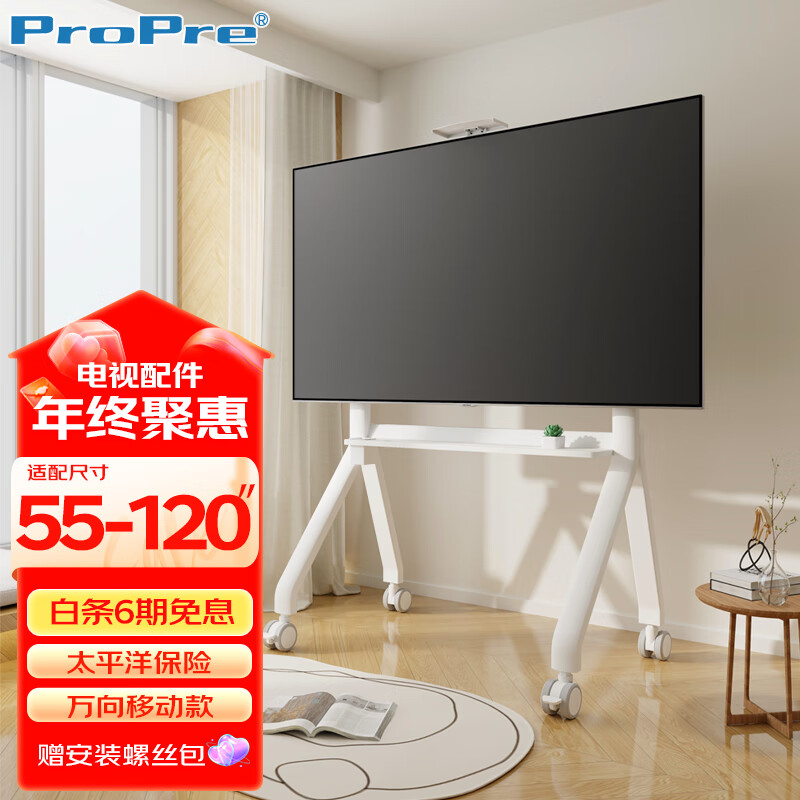ProPre 55-120英寸电视机移动推车 视频会议电视挂架 广告机商显屏电视支架 教学机一体落地支架挂架-白色价格:780.00元!