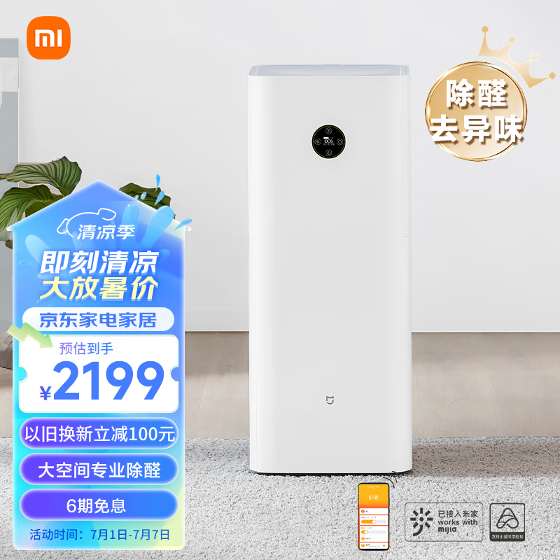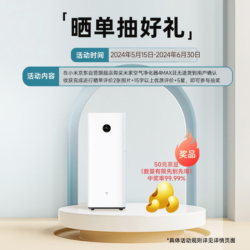 米家 小米空气净化器4Max 专业级除甲醛除异味除菌家用大空间 99.99%灭活性能 宠物空气净化器价格:2199.00元!